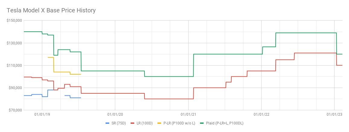 - Model 3 RWD: $43,490 (was $43,990; down $500)